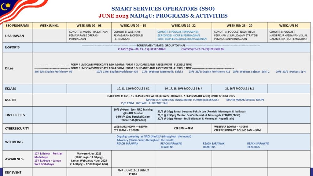JADUAL AKTIVITI PERKHIDMATAN PINTAR NADI (JUN 2025)
