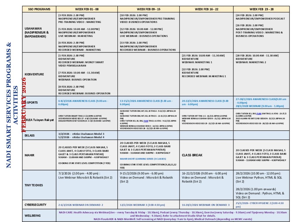 JADUAL PERKHIDMATAN PINTAR NADI FEBUARI